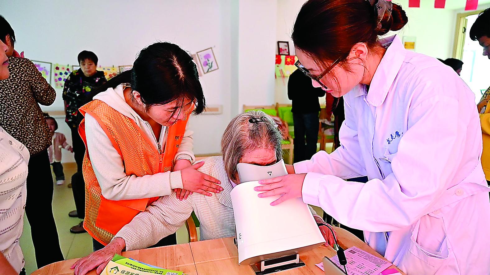 27日,由建陽區(qū)婦聯(lián)主辦的“孝親敬老,聚力同行”重陽節(jié)主題活動(dòng)在嘉禾社區(qū)嵌入式養(yǎng)老中心舉行,醫(yī)護(hù)人員為老人開展眼部健康檢查,講解護(hù)理知識,讓老人們體驗(yàn)到專業(yè)的醫(yī)療服務(wù)。(黃慧聰 肖文星 方詩琦 攝)