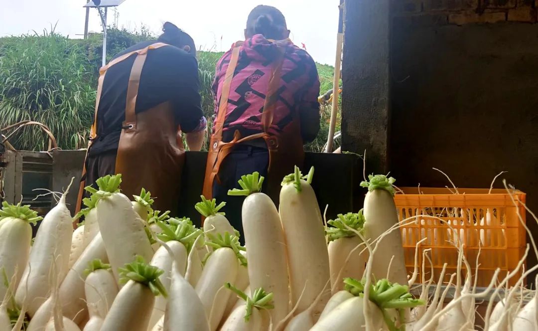 拔蘿卜、清洗、分揀、搬運(yùn)、裝車,大家分工明確,幾趟下來已是汗流浹背,但劉善葉并不覺得累,“一想到幾個月的辛苦馬上就能換成錢,心里美滋滋的,渾身有使不完的勁?!?/p>