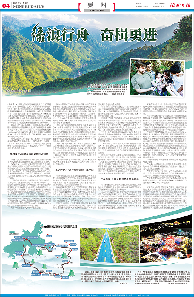 2021年10月,南平以武夷山國(guó)家公園設(shè)立為契機(jī),出臺(tái)了《環(huán)武夷山國(guó)家公園保護(hù)發(fā)展帶總體規(guī)劃》,主動(dòng)先行先試,深入實(shí)施生態(tài)環(huán)境保護(hù)行動(dòng),在保護(hù)生物多樣性方面采取了一系列“硬核”措施,推動(dòng)資源培育、生態(tài)保護(hù)持續(xù)提檔升級(jí),讓南平的“綠色標(biāo)簽”特色更特、亮點(diǎn)更亮、優(yōu)勢(shì)更優(yōu),著力打造人與自然和諧共生的美好家園。