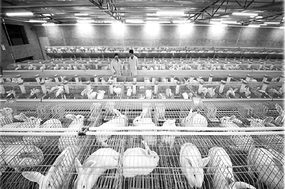 走進兔舍,只見一排排現(xiàn)代化的兔籠排列整齊,一只只肥壯的肉兔看到陳乾才靠近,耳朵和鼻子不停聳動,模樣甚是可愛。