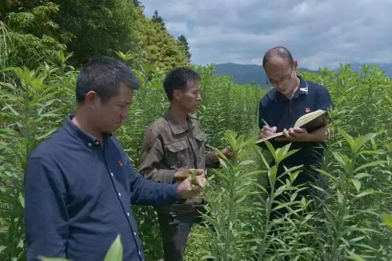 “農(nóng)村黨建”體檢調(diào)研組向農(nóng)戶了解百合花種植效益情況。資料照片