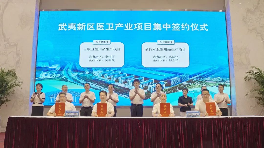 7月30日,武夷新區(qū)醫(yī)衛(wèi)產(chǎn)業(yè)招商推介會暨醫(yī)衛(wèi)產(chǎn)業(yè)項目集中簽約活動順利舉行。簽約儀式上,武夷新區(qū)現(xiàn)場簽約福建省百順衛(wèi)生用品有限公司個人衛(wèi)生護理用品項目、福建金佰禾衛(wèi)生用品有限公司個人衛(wèi)生護理用品項目、福建博正科技有限公司衛(wèi)生用品配套生產(chǎn)項目及福建金柔紙業(yè)有限公司個人衛(wèi)生護理用品項目等4個醫(yī)衛(wèi)產(chǎn)業(yè)項目?!耙淮未吻⒄効疾熘校覀兏惺艿搅宋湟男聟^(qū)的滿滿誠意和高效服務(wù)!”福建百順衛(wèi)生用品有限公司總經(jīng)理吳端頌激動地說道。