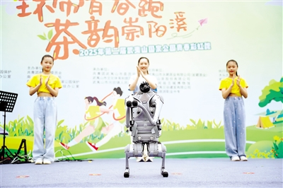 此次賽事還引入機器狗“多?!睋?dān)任“科技領(lǐng)跑員”,其萌趣身影貫穿熱身操與領(lǐng)跑環(huán)節(jié)?!岸喔!睍r而騰空后翻,時而“手舞足蹈”,憨態(tài)可掬的動作引得選手們紛紛蹲身“求合影”。共青團武夷山市委書記何彥偲笑稱:“這位‘科技領(lǐng)跑員’既是賽事的‘氣氛組擔(dān)當(dāng)’,也寓意武夷山生態(tài)保護與科技創(chuàng)新的‘雙向奔赴’——當(dāng)山水畫卷遇上硬核科技,青春奔跑就有了更潮的表達!”