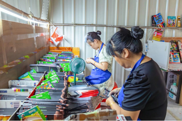 華文鉛筆包裝“零工庭院”工作現(xiàn)場(chǎng)