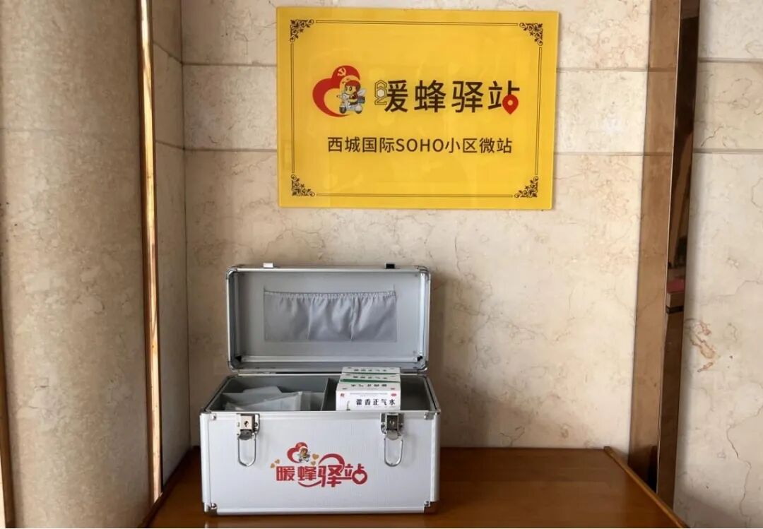 與此同時,區(qū)城管局積極協(xié)調(diào)物業(yè)服務企業(yè),在小區(qū)門崗周邊打造了溫馨實用的便民驛站。驛站內(nèi)不僅配備了充足的充電插座、飲水機等設備,還常備了創(chuàng)可貼、碘伏、防暑藥等應急物資,為新就業(yè)群體提供了實實在在的便利。