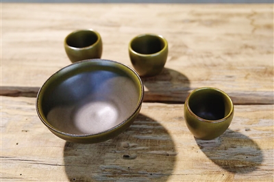 石可為硯,亦可為釉。硯石細(xì)料做釉水,在之前電窯試燒的結(jié)果中,試制的茶洋盞呈現(xiàn)出意想不到的釉面變化。本次在柴燒高溫的作用下,有些器物的黑釉中泛起了細(xì)碎銀光,釉面出現(xiàn)了如青銅文物般的顏色。在非遺發(fā)展進(jìn)入“跨界活化”時(shí)代的當(dāng)下,這樣的區(qū)縣內(nèi)非遺聯(lián)動(dòng),給非遺發(fā)展提供了更多可能性,也使得加工剩余的材料意外地?zé)òl(fā)生命力。