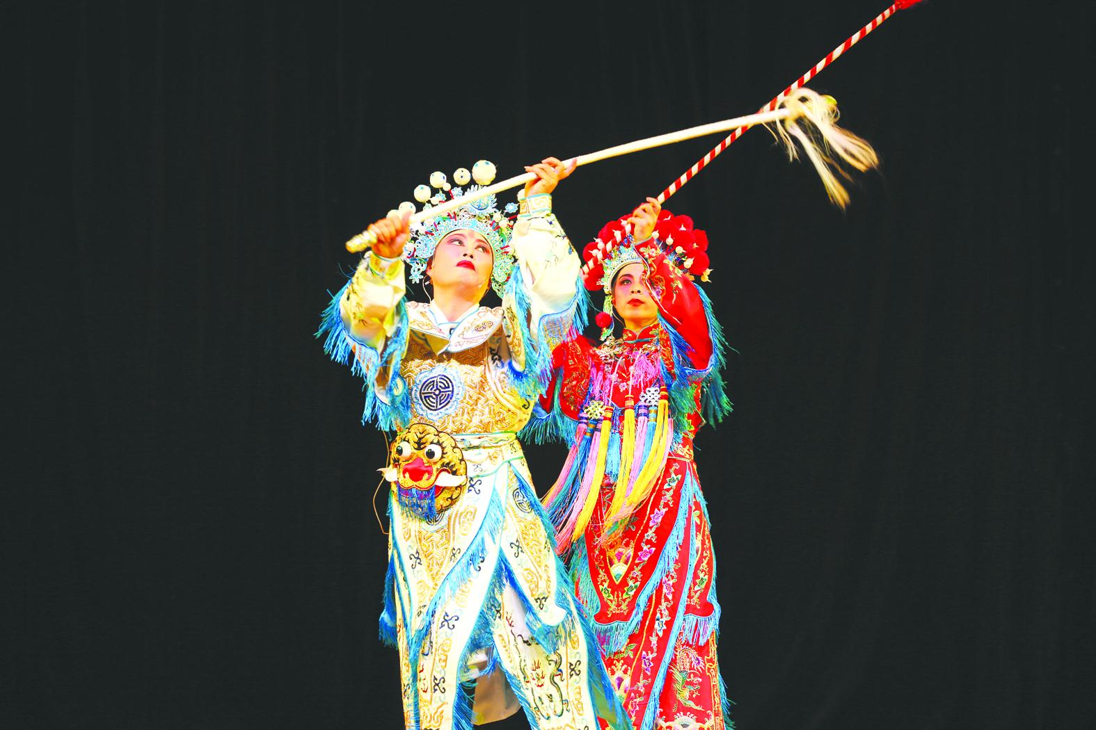 復(fù)排經(jīng)典劇目《九龍閣》劇照:楊宗保到穆柯寨索要降龍木,與穆桂英交戰(zhàn)。
