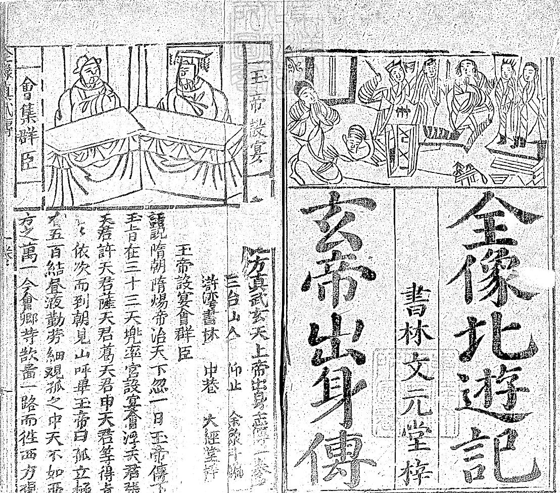 其中《北方真武玄天上帝出身志傳》(《北游記》)和《五顯靈官大帝華光天王傳》(《南游記》)的作者為余象斗,是建陽人。葉德輝在《書林清話》中曾言:“夫刻書之盛,首推閩中,而閩中又以建安為盛,建安尤以余氏為最。”余象斗正出身于這樣一個(gè)以刻書為業(yè)的世家。據(jù)記載,他早年也曾讀書求仕,但屢試不第。萬歷十九年(1591),余象斗徹底放棄科舉,“辛卯之秋,不佞斗始輟儒家業(yè),家世書坊,鋟笈為事”,自此專心經(jīng)營印刷出版業(yè)。