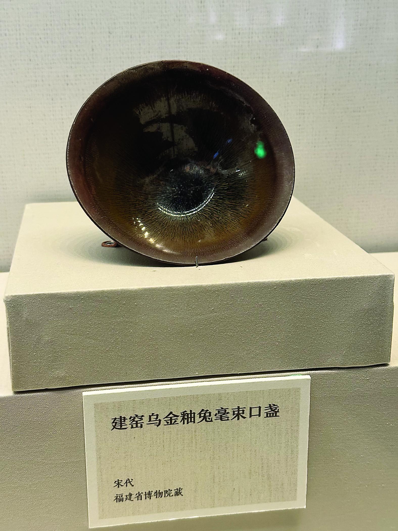 宋朝的建窯烏金釉兔毫束口盞,福建省博物院藏。