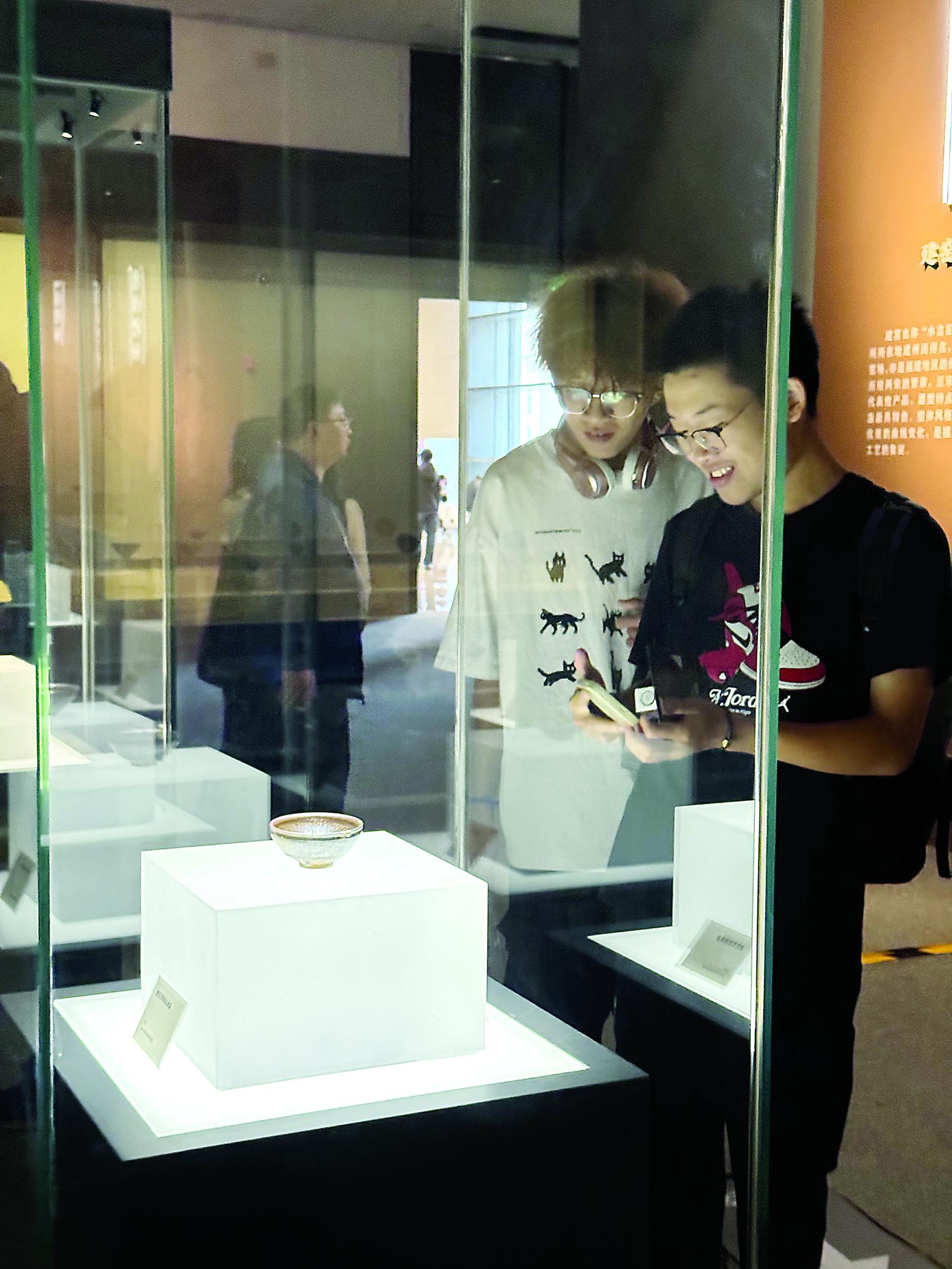 在中國(guó)國(guó)家博物館,人們?cè)谟^光以“紫玉甌心”為主題的中國(guó)建窯建盞文化展。(于2024年10月拍攝)