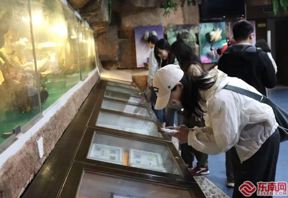 采訪團在武夷山國家公園宣教館拍攝動物標本。