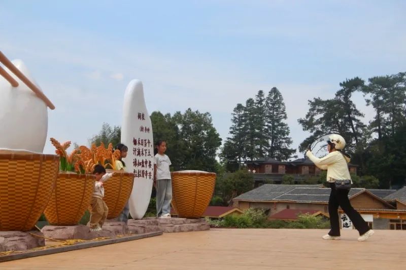 游客在“水稻的一生”拍照打卡點(diǎn)拍照