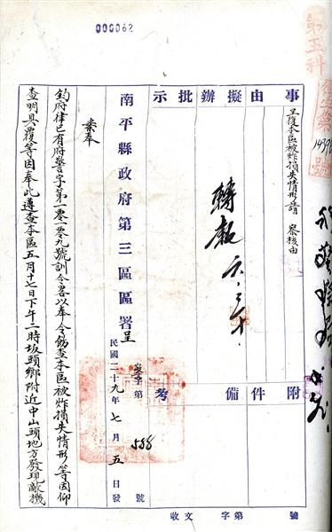 侵華日軍敵機多次竄至延平,投下炸彈,致百姓無辜罹難,家園焚毀,家庭破碎。八十載歲月流逝,但飽經(jīng)硝煙浸染的檔案猶在,且翻開延平區(qū)檔案館的民國政府文書,直面?zhèn)矗懹洑v史。