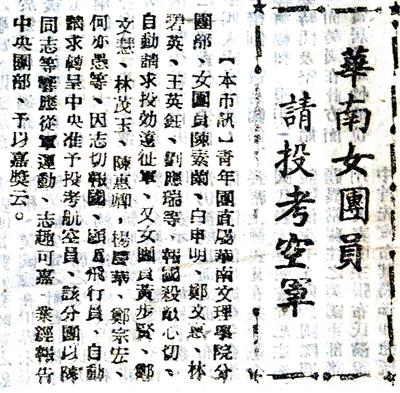 華南女團員 請投考空軍(1944年4月29日《南方日報》)