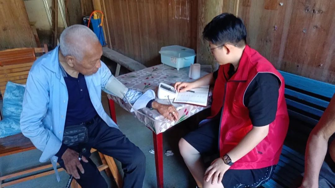 全民健康“4+N”服務(wù)團(tuán)隊(duì)入戶為簽約對象體檢(黃璟 攝)