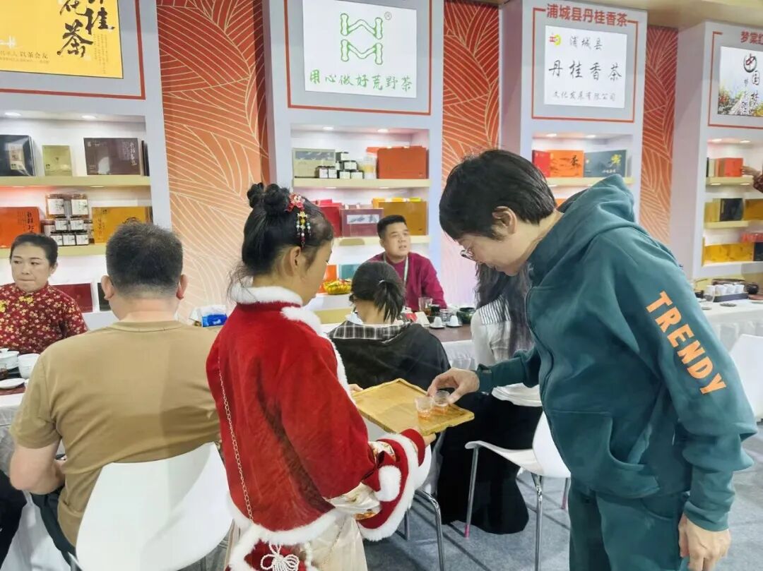 展區(qū)內(nèi)亮點(diǎn)紛呈,丹桂紅茶、丹桂白茶、丹桂烏龍茶等多款核心茶品整齊陳列。中谷茶業(yè)的抹茶產(chǎn)品試吃活動(dòng)吸引眾多觀眾駐足互動(dòng);仙芝科技展出靈芝茶、靈芝餅干等健康茶點(diǎn),讓消費(fèi)者親身感受茶食融合新場(chǎng)景。展會(huì)期間,浦城茶葉收獲現(xiàn)場(chǎng)一致好評(píng),并與安徽、廣東等地采購(gòu)商達(dá)成初步合作。