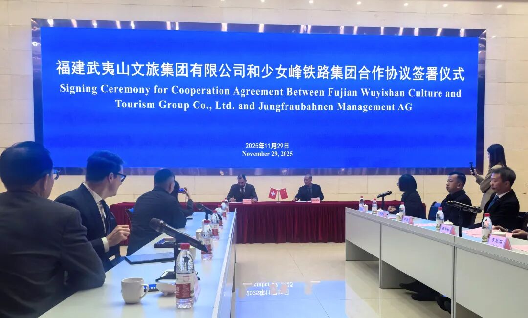 閩北日報訊(記者 裴禮輝)2025年適逢中瑞建交75周年及“中瑞文化旅游年”。11月29日,在武夷山景區(qū)南入口智慧管理中心,武夷山文旅集團與瑞士少女峰鐵路集團共同簽署合作協(xié)議,開啟兩大名山從自然對話到文化交融、從生態(tài)保護到可持續(xù)發(fā)展的全新合作篇章。